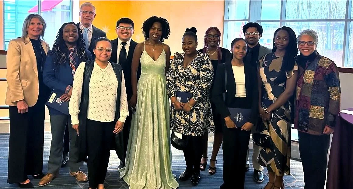 Pam Lewis with Joyce & Rich Eldh, and the recipients of the Connect-Us/UConn Eldh Family Scholarship
