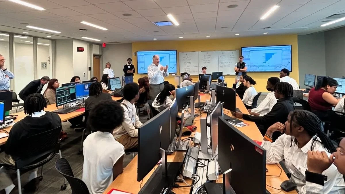 Fairfield University and Dr. Walter Hlawitschka of the Dolan Business School hosted a "Stock Trading Simulation" workshop where the students learned about the stock market and trading.